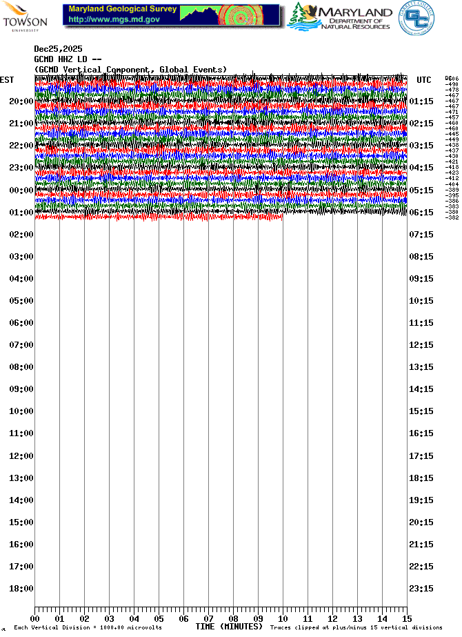 • Local:  Small, close-by seismic events. Locally generated seismic signals tend to be higher frequency and lower amplitude than large, distant events.  There is more noise in the local display due to traffic, wind, etc.