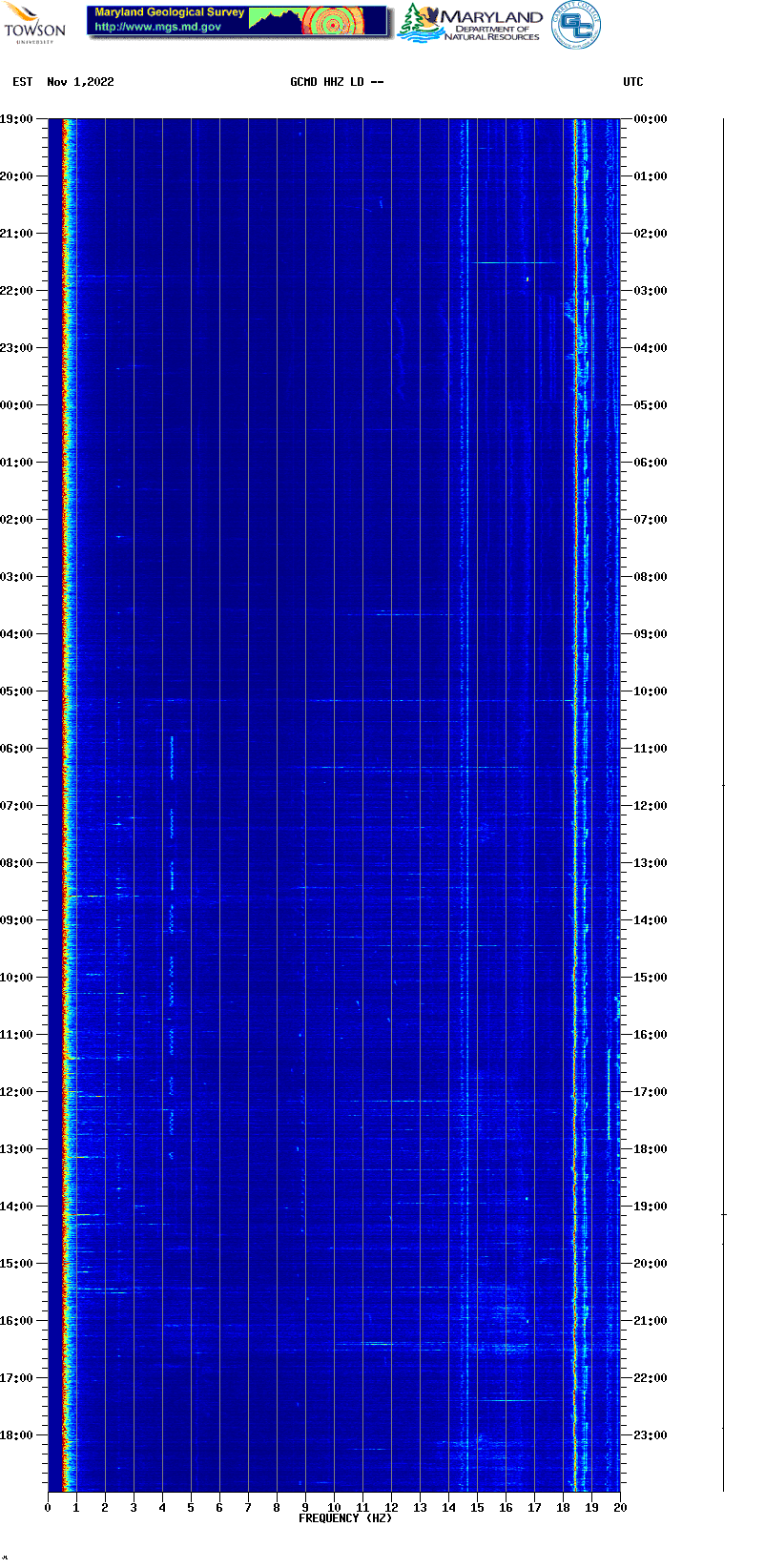 • Local:  Small, close-by seismic events. Locally generated seismic signals tend to be higher frequency and lower amplitude than large, distant events.  There is more noise in the local display due to traffic, wind, etc.