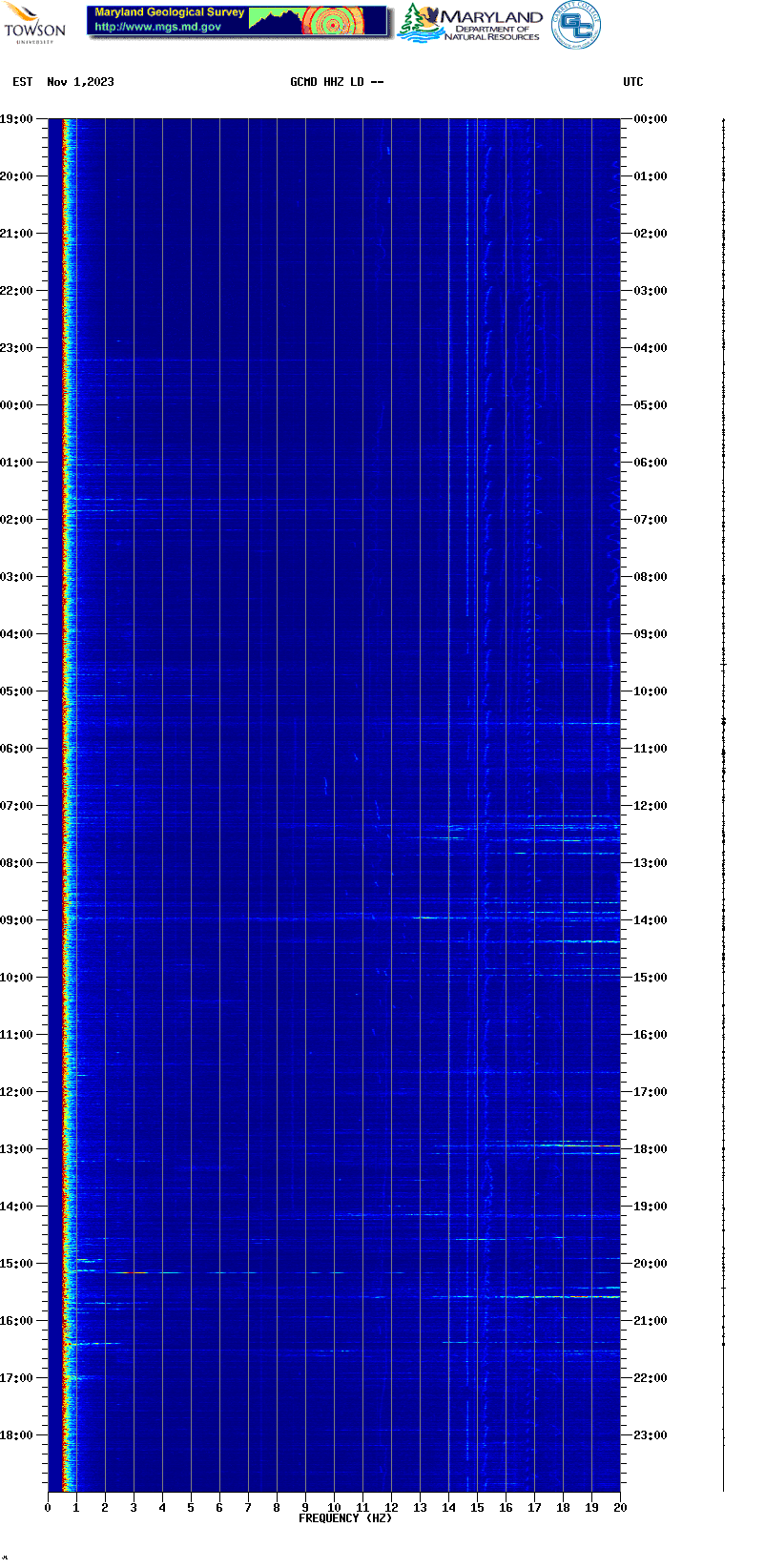 • Local:  Small, close-by seismic events. Locally generated seismic signals tend to be higher frequency and lower amplitude than large, distant events.  There is more noise in the local display due to traffic, wind, etc.