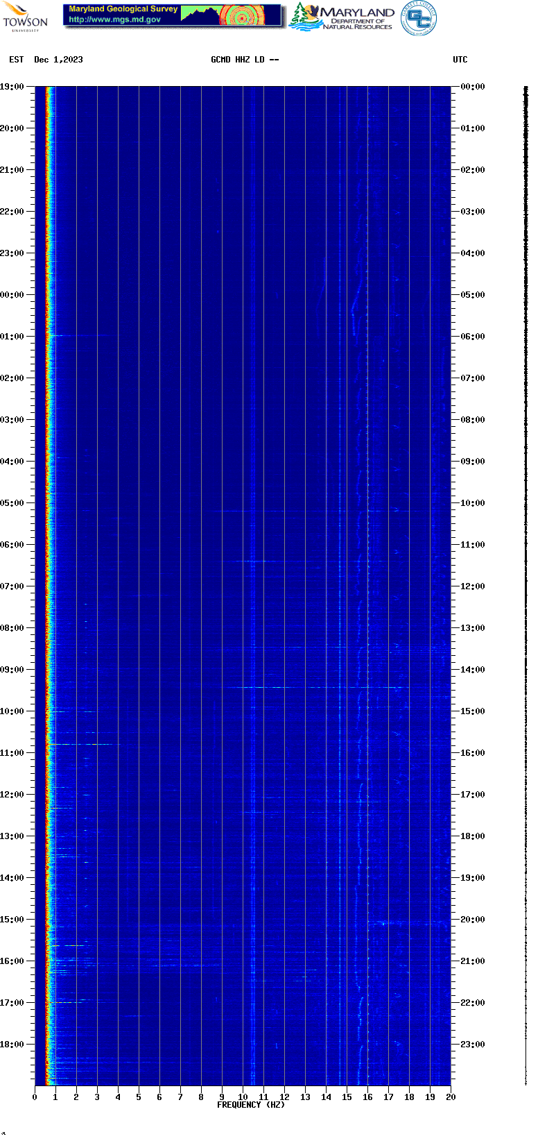 • Local:  Small, close-by seismic events. Locally generated seismic signals tend to be higher frequency and lower amplitude than large, distant events.  There is more noise in the local display due to traffic, wind, etc.