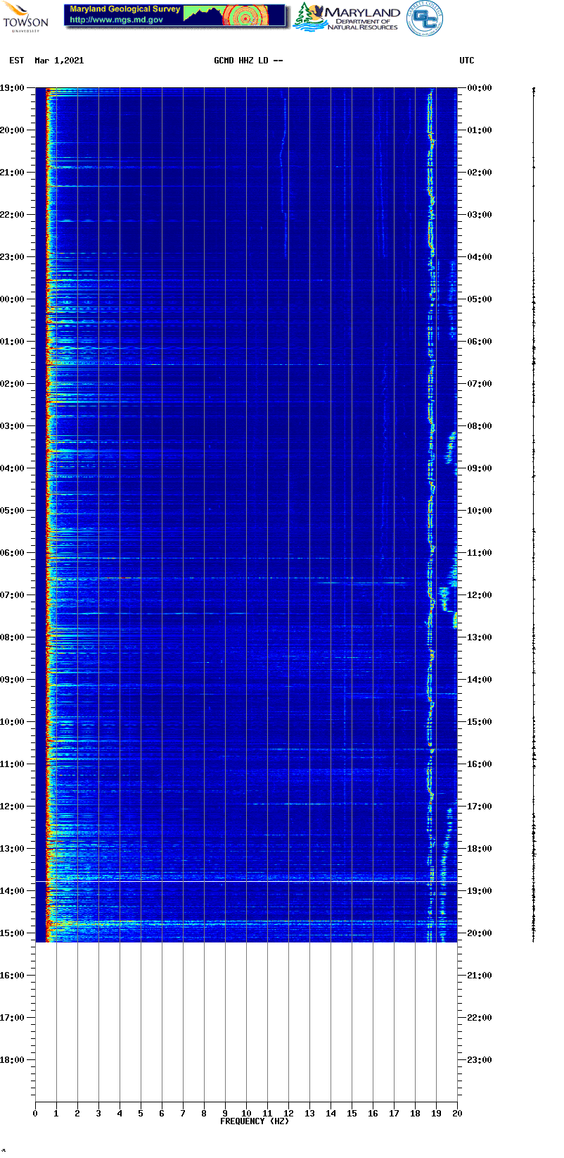 • Local:  Small, close-by seismic events. Locally generated seismic signals tend to be higher frequency and lower amplitude than large, distant events.  There is more noise in the local display due to traffic, wind, etc.