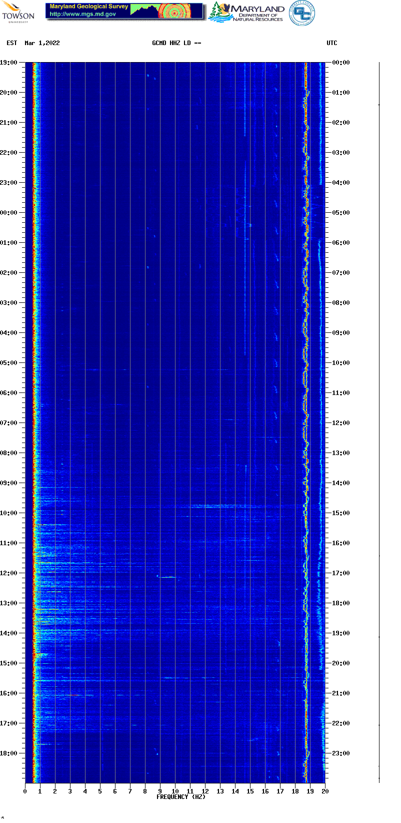 • Local:  Small, close-by seismic events. Locally generated seismic signals tend to be higher frequency and lower amplitude than large, distant events.  There is more noise in the local display due to traffic, wind, etc.