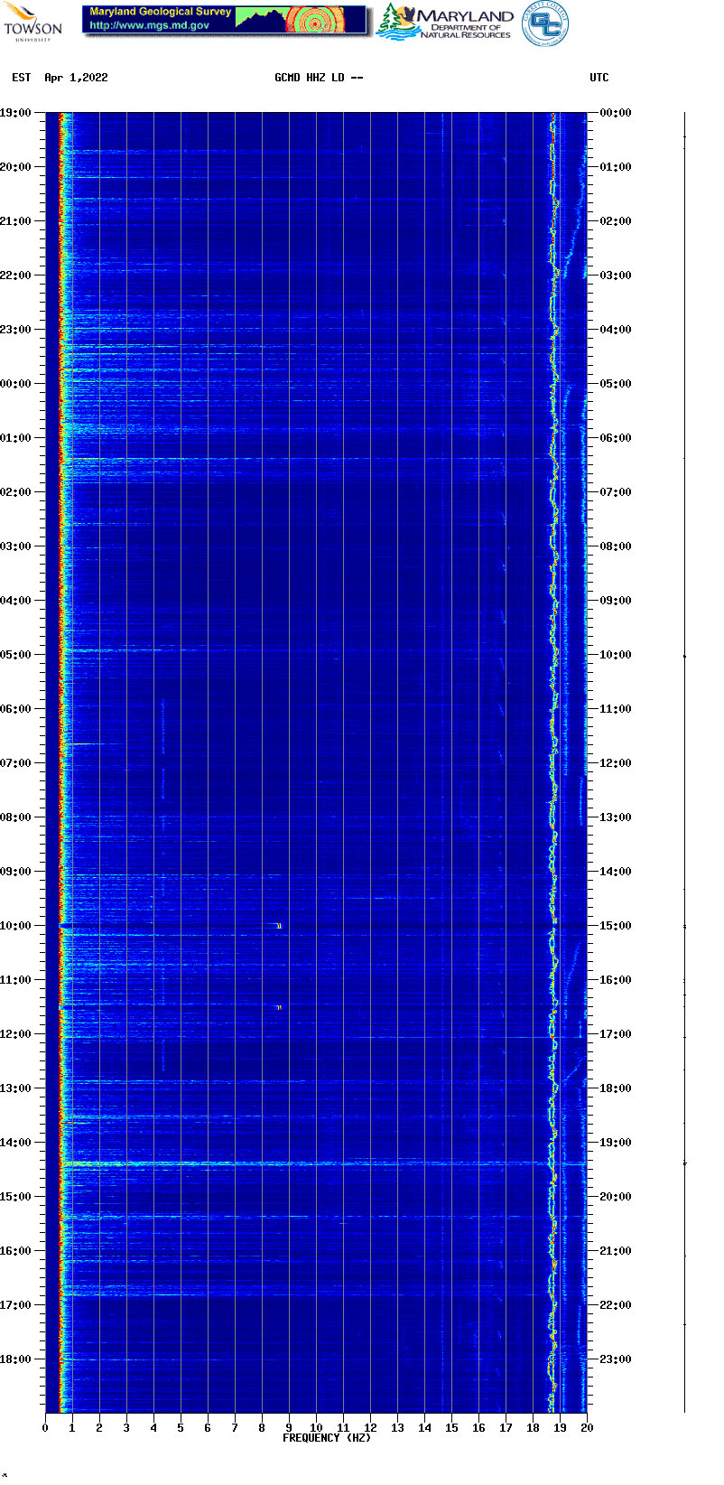 • Local:  Small, close-by seismic events. Locally generated seismic signals tend to be higher frequency and lower amplitude than large, distant events.  There is more noise in the local display due to traffic, wind, etc.