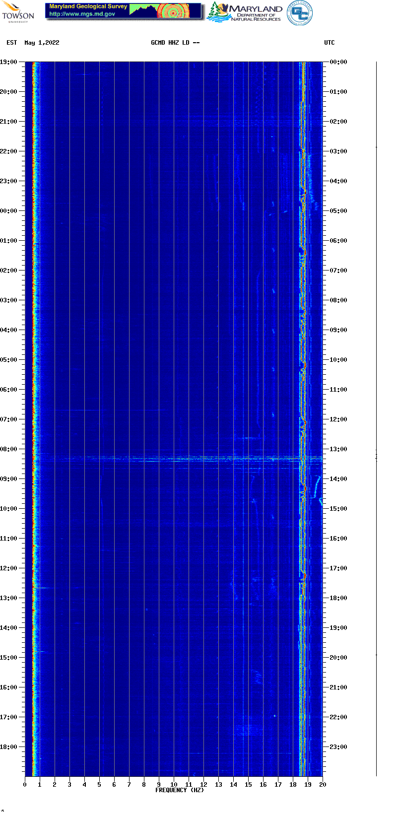 • Local:  Small, close-by seismic events. Locally generated seismic signals tend to be higher frequency and lower amplitude than large, distant events.  There is more noise in the local display due to traffic, wind, etc.