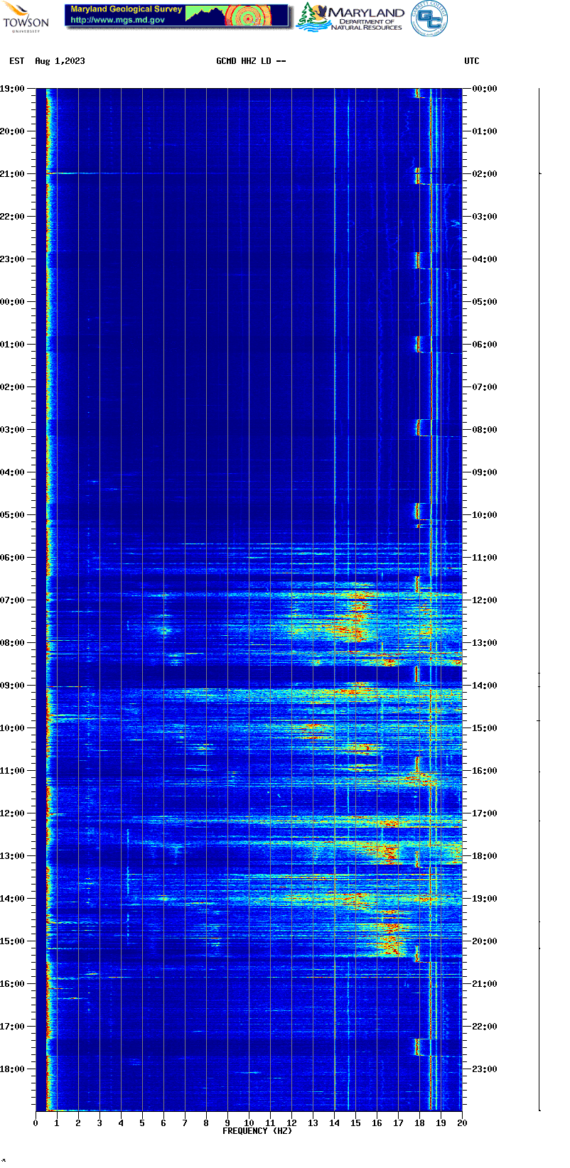 • Local:  Small, close-by seismic events. Locally generated seismic signals tend to be higher frequency and lower amplitude than large, distant events.  There is more noise in the local display due to traffic, wind, etc.