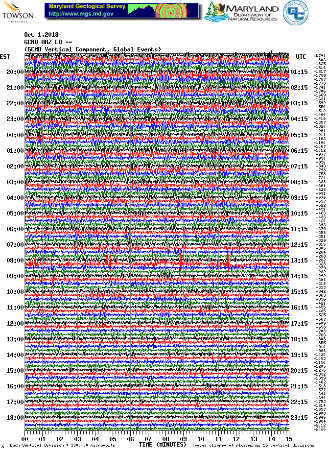 • Local:  Small, close-by seismic events. Locally generated seismic signals tend to be higher frequency and lower amplitude than large, distant events.  There is more noise in the local display due to traffic, wind, etc.