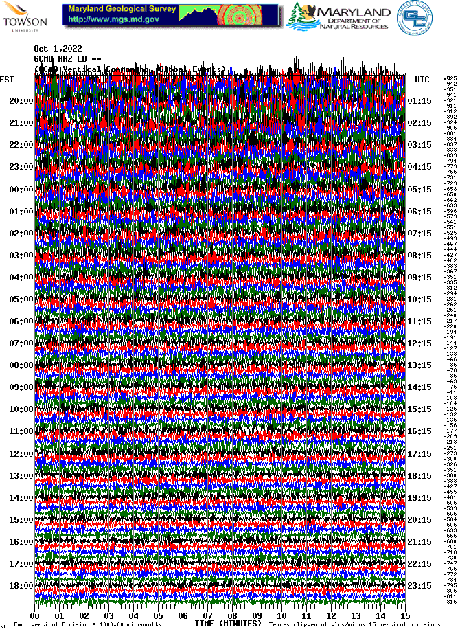 • Local:  Small, close-by seismic events. Locally generated seismic signals tend to be higher frequency and lower amplitude than large, distant events.  There is more noise in the local display due to traffic, wind, etc.