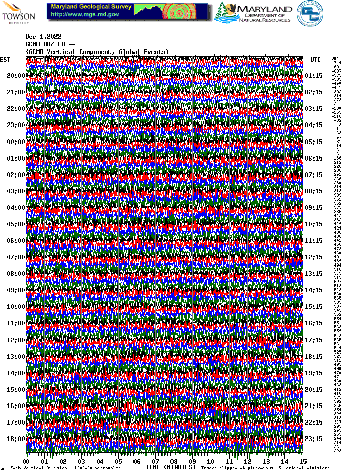 • Local:  Small, close-by seismic events. Locally generated seismic signals tend to be higher frequency and lower amplitude than large, distant events.  There is more noise in the local display due to traffic, wind, etc.
