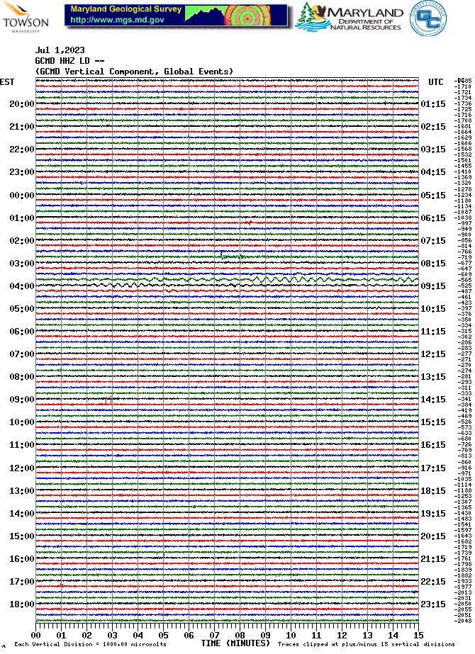 Garrett College Station (GCMD) Helicorder Record