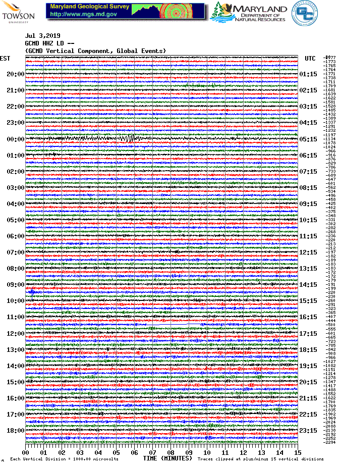 Garrett College Station (GCMD) Helicorder Record