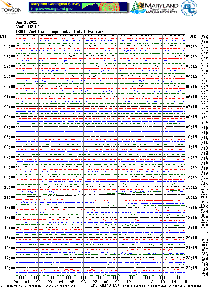 • Local:  Small, close-by seismic events. Locally generated seismic signals tend to be higher frequency and lower amplitude than large, distant events.  There is more noise in the local display due to traffic, wind, etc.