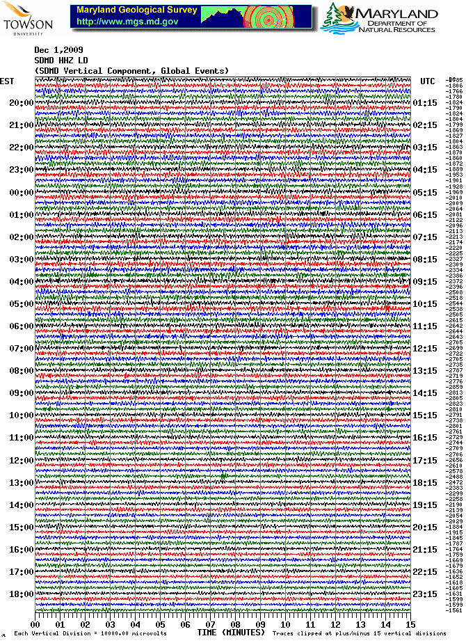 You can also use the USGS "Earthquake Travel Time Information and Calculator" page to estimate the arrival times of seismic waves from an epicenter to the Soldiers Delight seismometer. Use the following coodinates (decimal degrees) for the Soldiers Delight area: