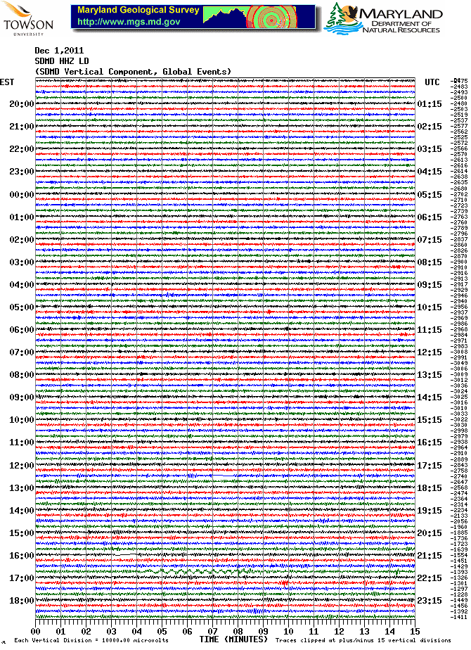 You can also use the USGS "Earthquake Travel Time Information and Calculator" page to estimate the arrival times of seismic waves from an epicenter to the Soldiers Delight seismometer. Use the following coodinates (decimal degrees) for the Soldiers Delight area: