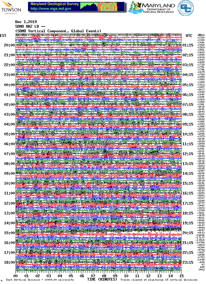 Soldier's Delight Station (SDMD) Helicorder Record