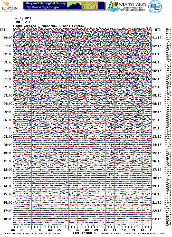 Soldier's Delight Station (SDMD) Helicorder Record