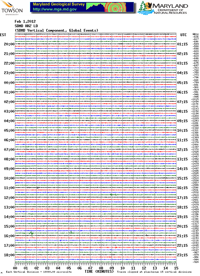 To see a listing of recent earthquake you might see on the helicorder records view: