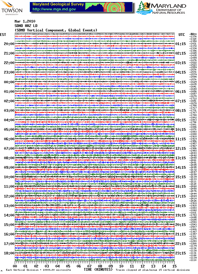 You can also use the USGS "Earthquake Travel Time Information and Calculator" page to estimate the arrival times of seismic waves from an epicenter to the Soldiers Delight seismometer. Use the following coodinates (decimal degrees) for the Soldiers Delight area: