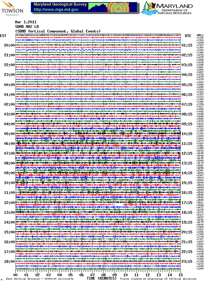 You can also use the USGS "Earthquake Travel Time Information and Calculator" page to estimate the arrival times of seismic waves from an epicenter to the Soldiers Delight seismometer. Use the following coodinates (decimal degrees) for the Soldiers Delight area: