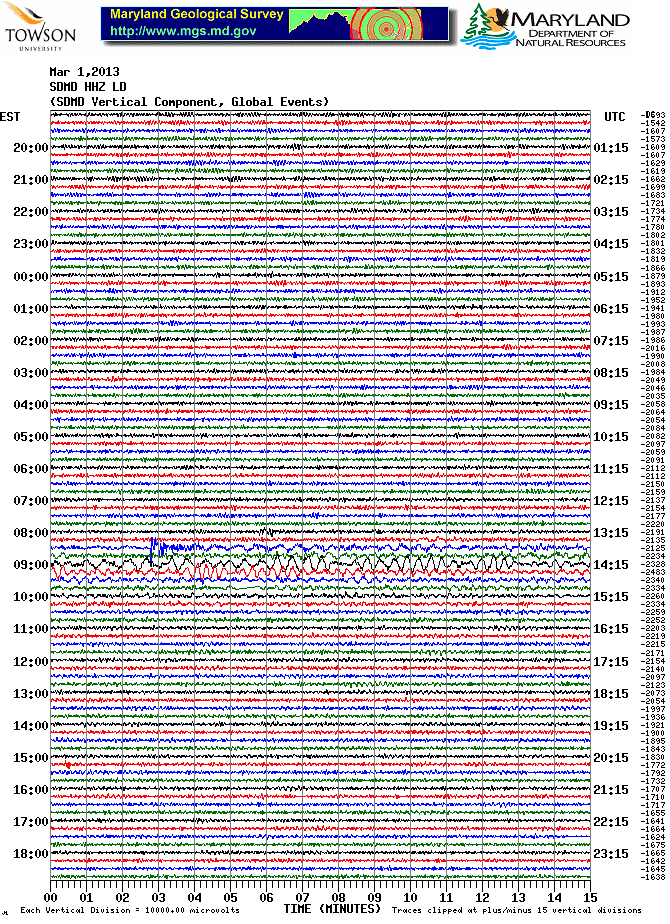 You can also use the USGS "Earthquake Travel Time Information and Calculator" page to estimate the arrival times of seismic waves from an epicenter to the Soldiers Delight seismometer. Use the following coodinates (decimal degrees) for the Soldiers Delight area: