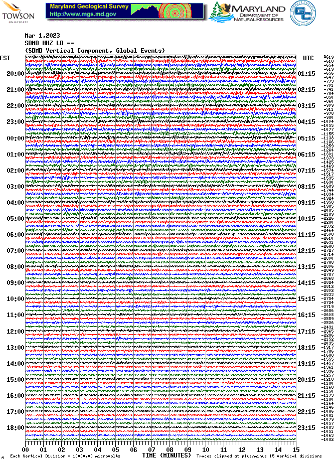 Soldier's Delight Station (SDMD) Helicorder Record