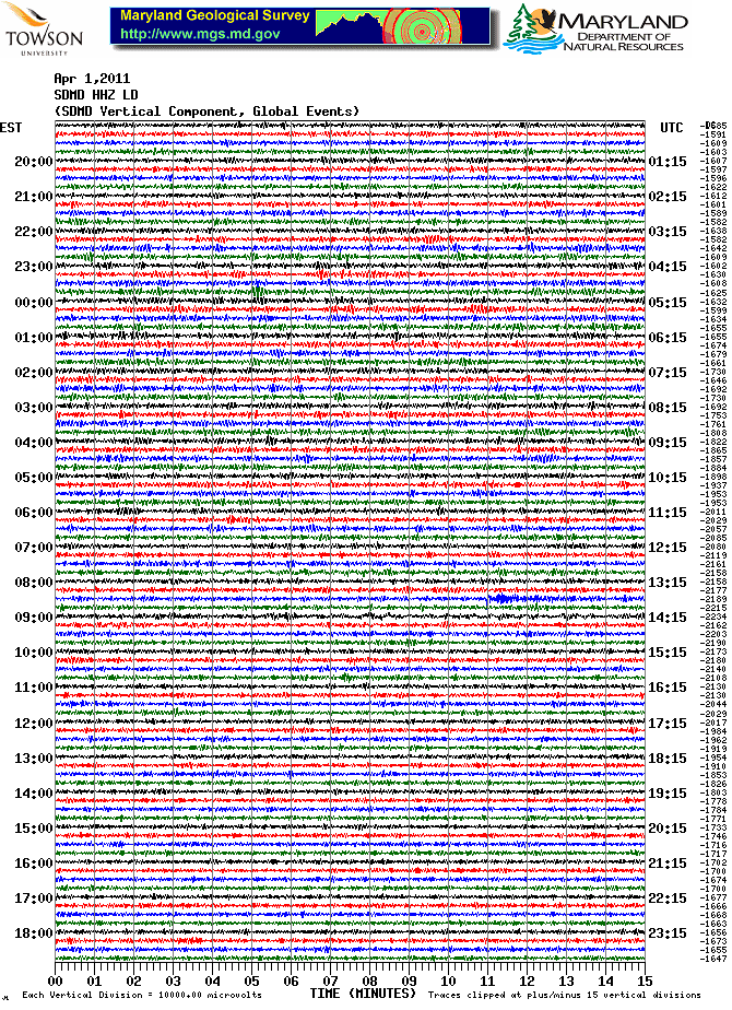 You can also use the USGS "Earthquake Travel Time Information and Calculator" page to estimate the arrival times of seismic waves from an epicenter to the Soldiers Delight seismometer. Use the following coodinates (decimal degrees) for the Soldiers Delight area: