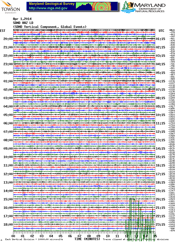 You can also use the USGS "Earthquake Travel Time Information and Calculator" page to estimate the arrival times of seismic waves from an epicenter to the Soldiers Delight seismometer. Use the following coodinates (decimal degrees) for the Soldiers Delight area: