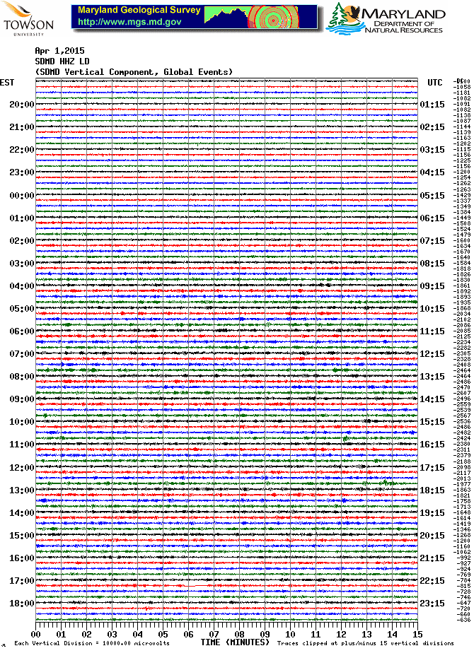 You can also use the USGS "Earthquake Travel Time Information and Calculator" page to estimate the arrival times of seismic waves from an epicenter to the Soldiers Delight seismometer. Use the following coodinates (decimal degrees) for the Soldiers Delight area:
