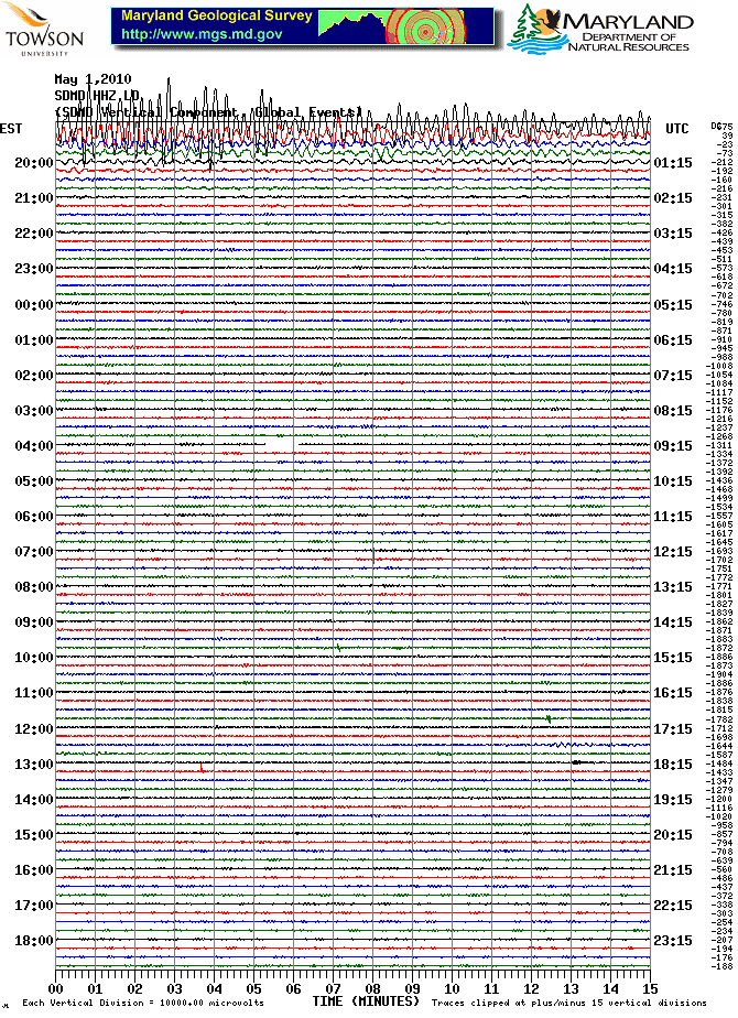 You can also use the USGS "Earthquake Travel Time Information and Calculator" page to estimate the arrival times of seismic waves from an epicenter to the Soldiers Delight seismometer. Use the following coodinates (decimal degrees) for the Soldiers Delight area: