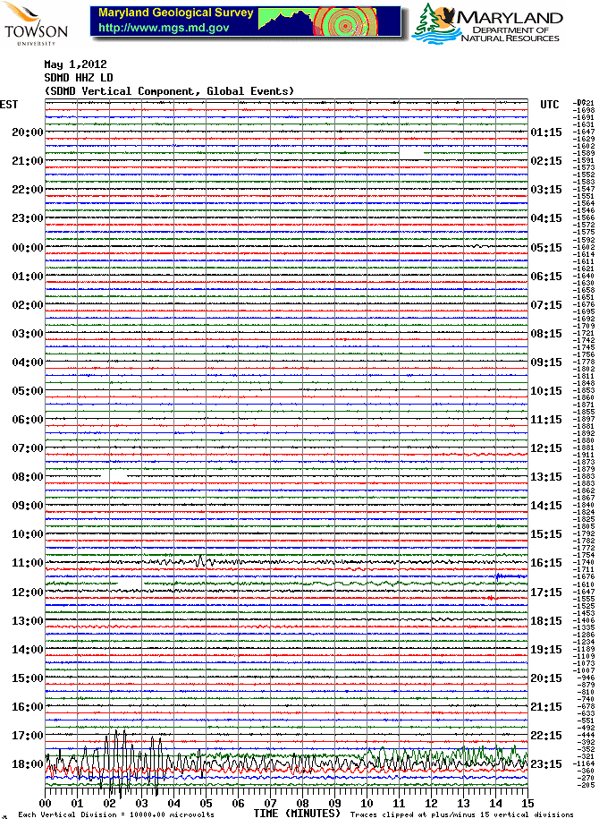 Soldier's Delight Station (SDMD) Helicorder Record