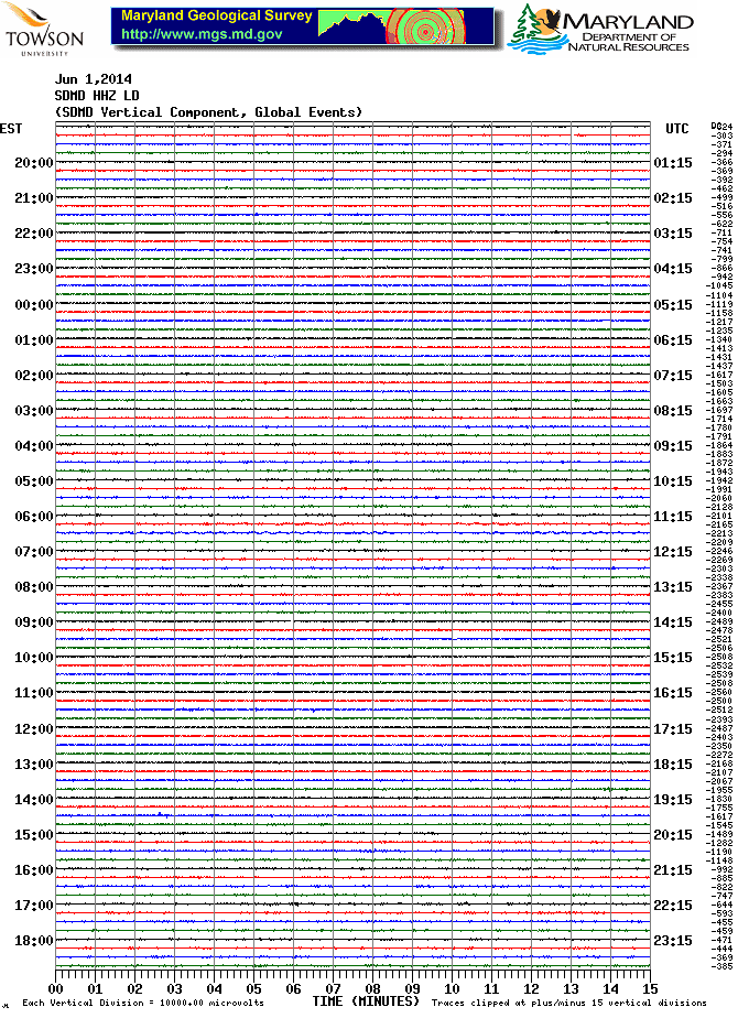 Soldier's Delight Station (SDMD) Helicorder Record