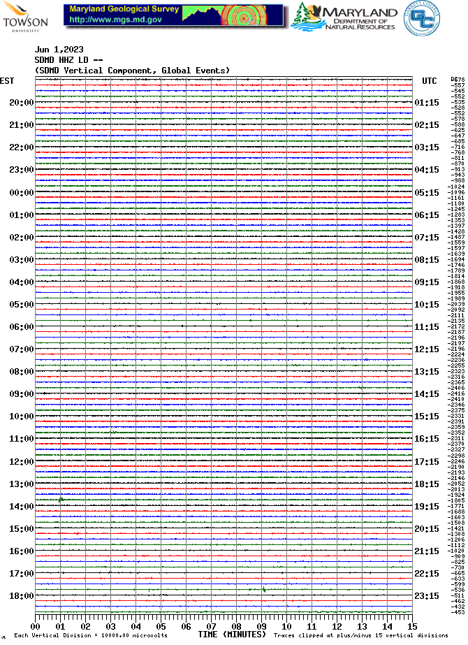 Soldier's Delight Station (SDMD) Helicorder Record