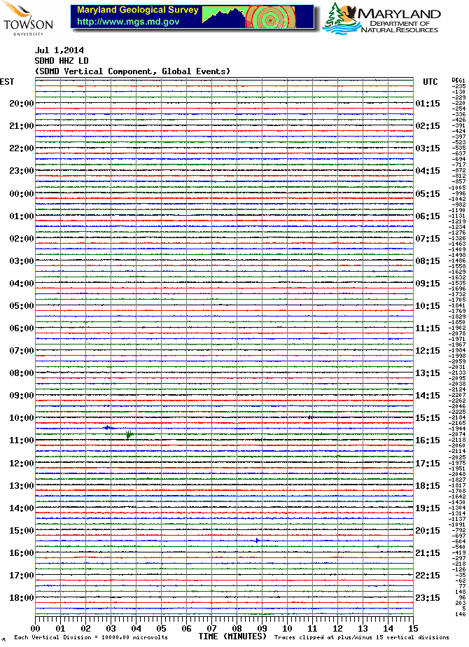 Soldier's Delight Station (SDMD) Helicorder Record