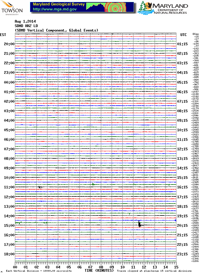 Soldier's Delight Station (SDMD) Helicorder Record