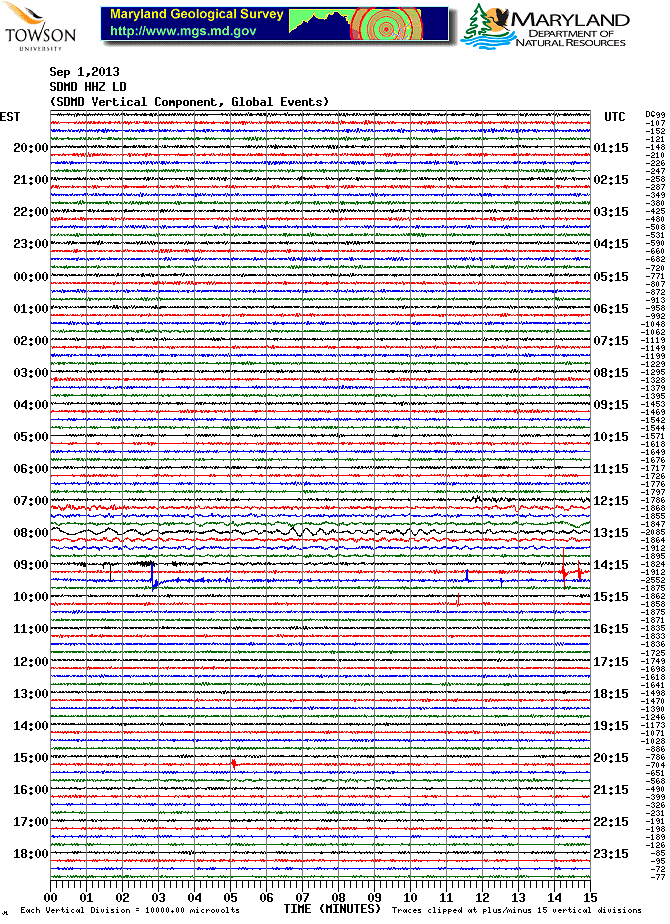 Soldier's Delight Station (SDMD) Helicorder Record