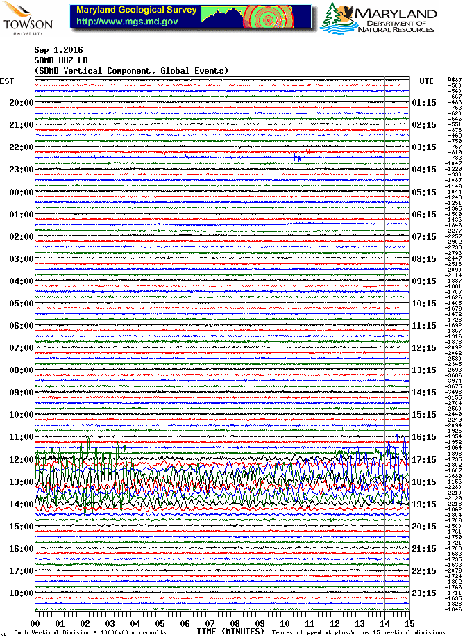Soldier's Delight Station (SDMD) Helicorder Record