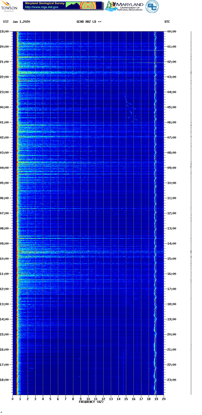 • Local:  Small, close-by seismic events. Locally generated seismic signals tend to be higher frequency and lower amplitude than large, distant events.  There is more noise in the local display due to traffic, wind, etc.