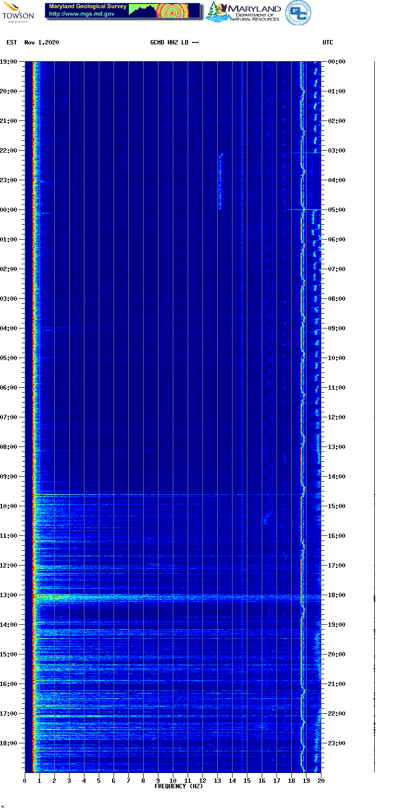 • Local:  Small, close-by seismic events. Locally generated seismic signals tend to be higher frequency and lower amplitude than large, distant events.  There is more noise in the local display due to traffic, wind, etc.