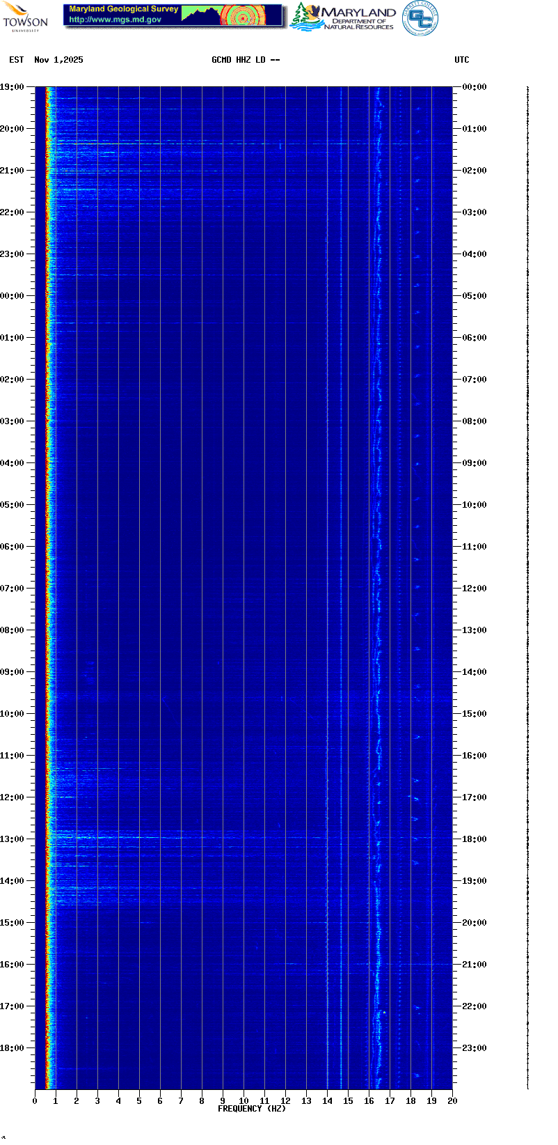 • Local:  Small, close-by seismic events. Locally generated seismic signals tend to be higher frequency and lower amplitude than large, distant events.  There is more noise in the local display due to traffic, wind, etc.