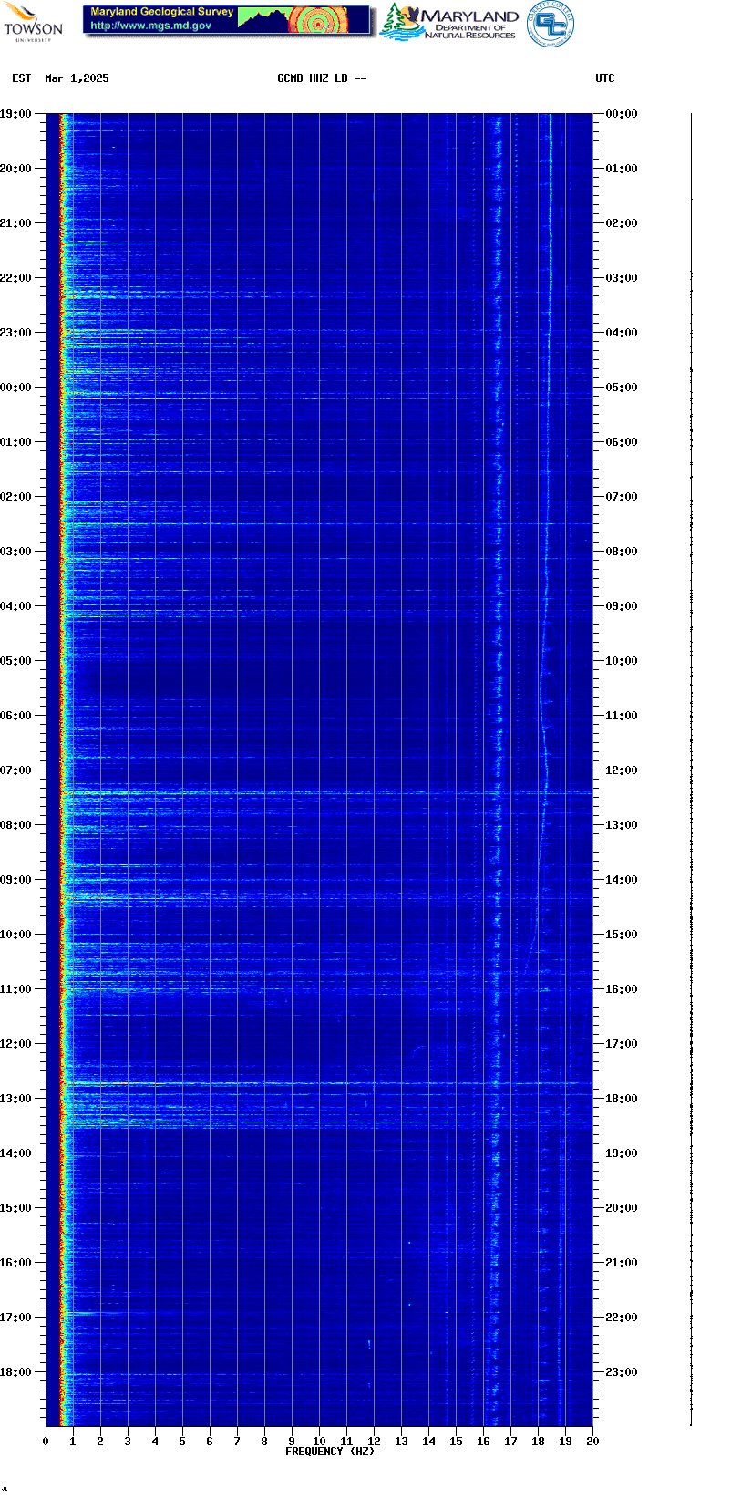 • Local:  Small, close-by seismic events. Locally generated seismic signals tend to be higher frequency and lower amplitude than large, distant events.  There is more noise in the local display due to traffic, wind, etc.