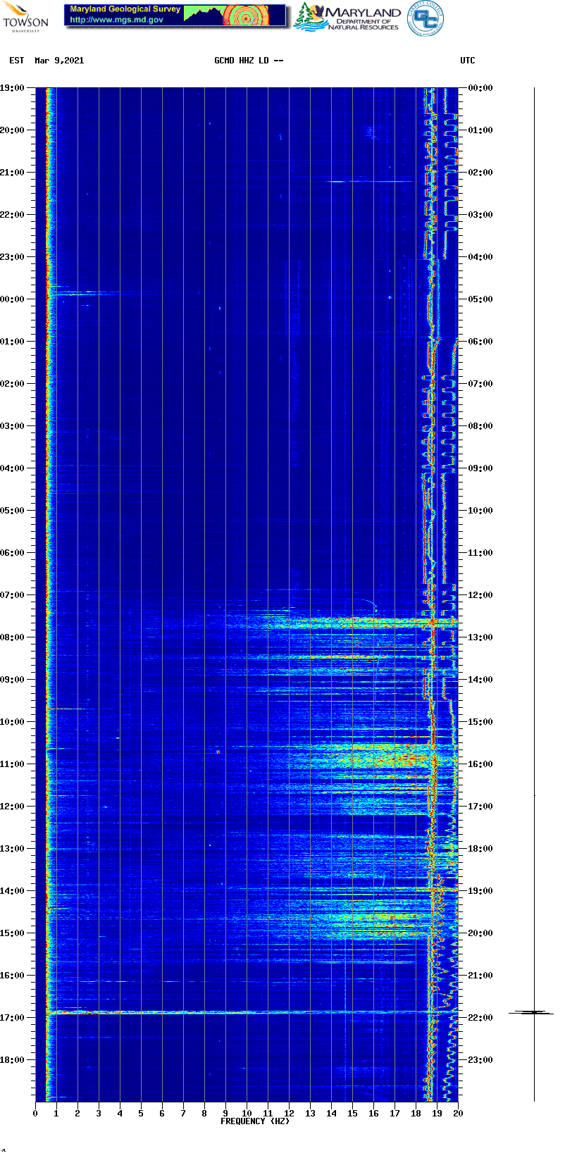 To see a listing of recent earthquake you might see on the helicorder records view: